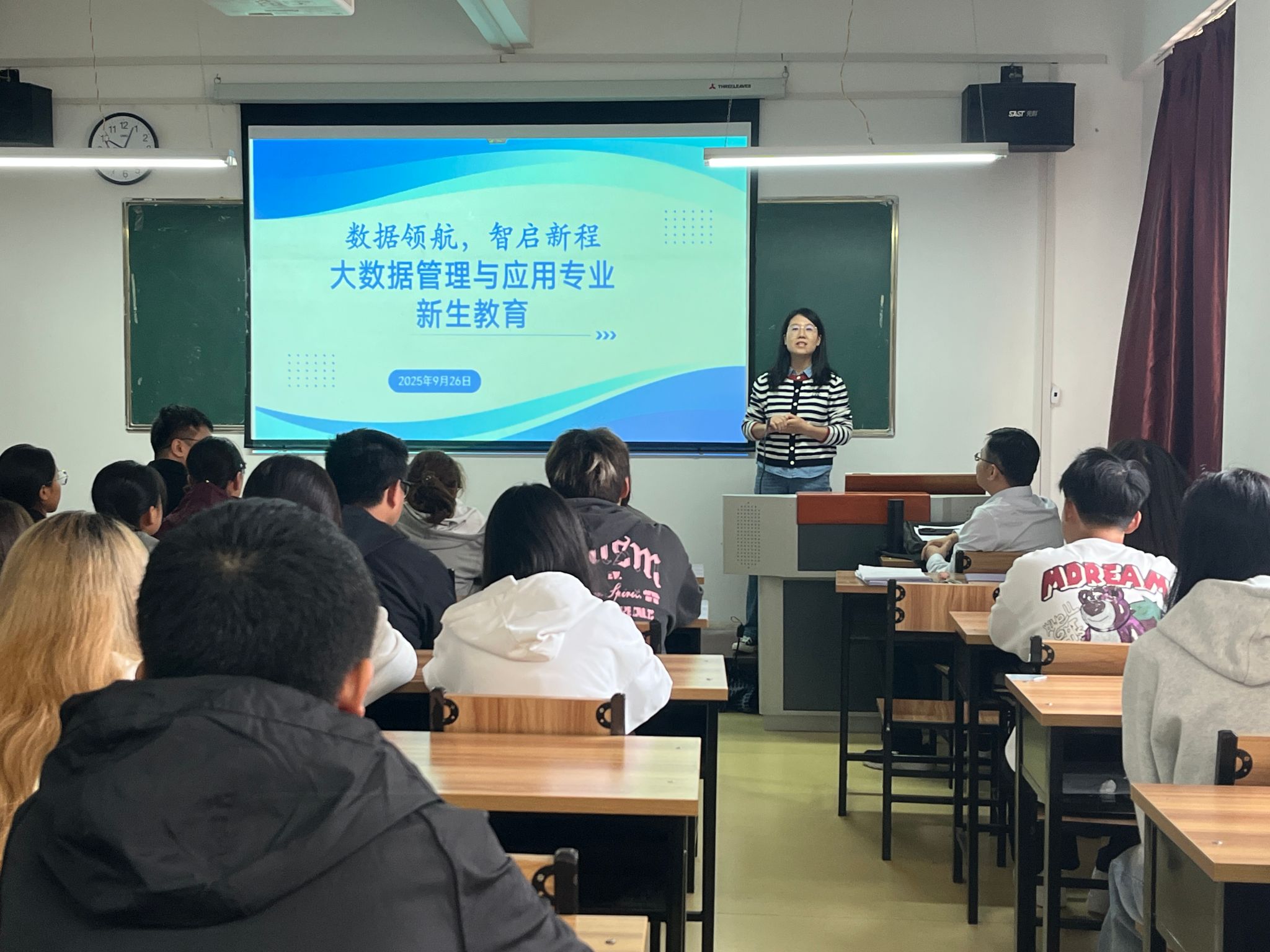 2025年9月27日,我校大数据管理与应用专业新生专业教育讲座在4404教室顺利举行。会议由大数据管理与应用教研室主任杨佳丽主持,专业带头人戚玉涛教授担任主讲。本次讲座专为大数据管理与应用专业的新生们设计,旨在为他们提供专业入门知识,并为今后的学习规划和职业发展提供指导。